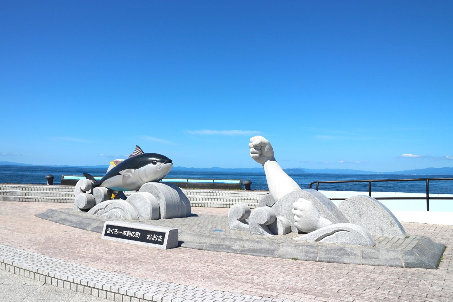 大間崎からは、17.5km先の函館市汐首岬を肉眼で確認でき、天気の良い日には五稜郭タワーが見えることも。設置されたマグロモニュメントは、マグロとそれを釣り上げる力強い腕の像で、マグロの聖地を象徴するひとつ。記念撮影にぴったりなスポットです!