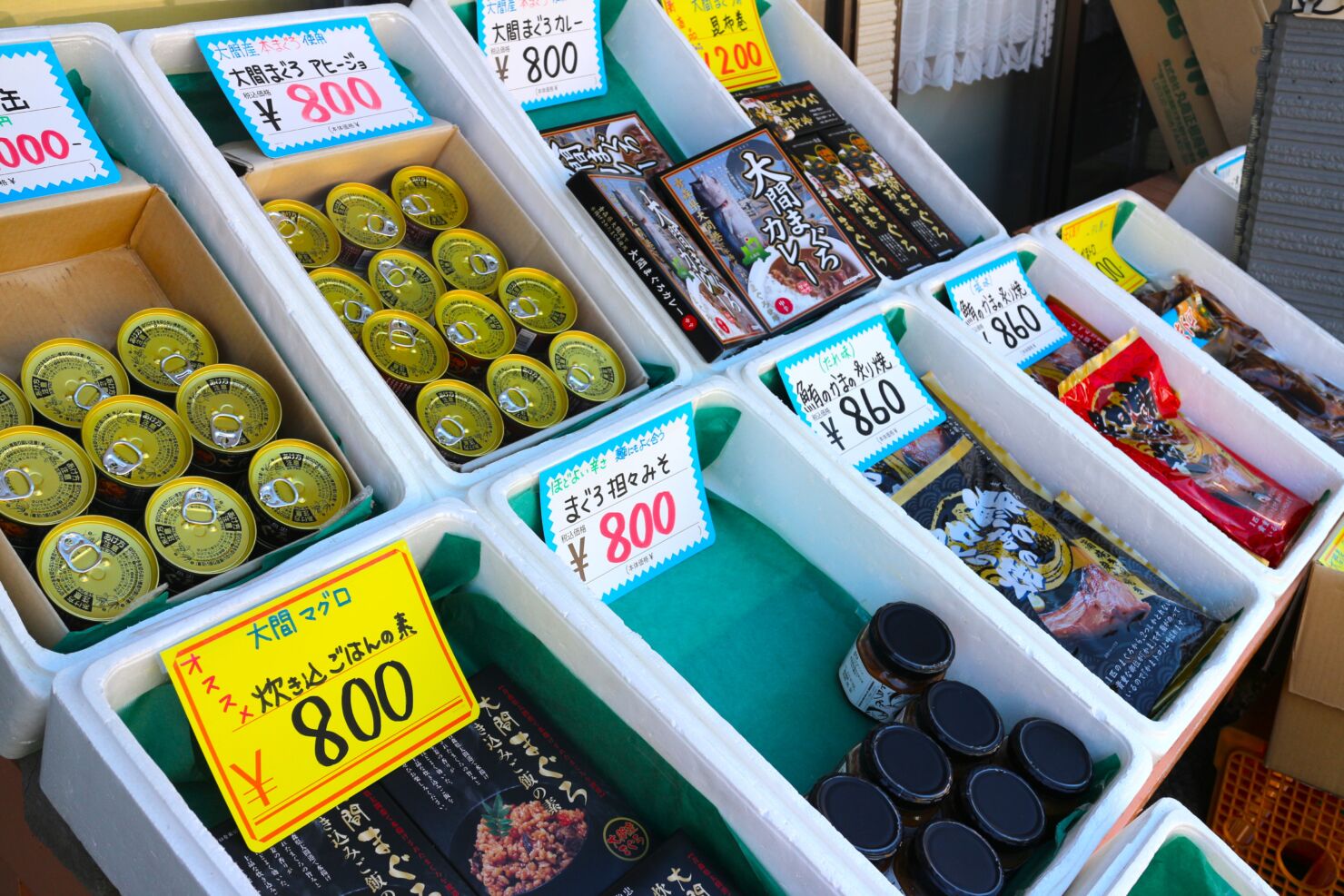 大間町を巡り大間まぐろを堪能した後は、大間ならではの特産品をチェックしましょう!大間崎の周辺には、お食事処以外にも土産店も多くあります。まぐろに負けない自慢の昆布や海藻、海鮮加工品など大間の味を詰め込んだ特産品が多く並んでいます。ほかにも、まぐろモチーフの大間限定グッズなどもあり旅の記念品としておすすめです。