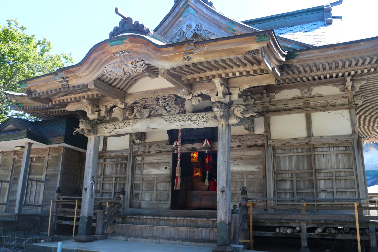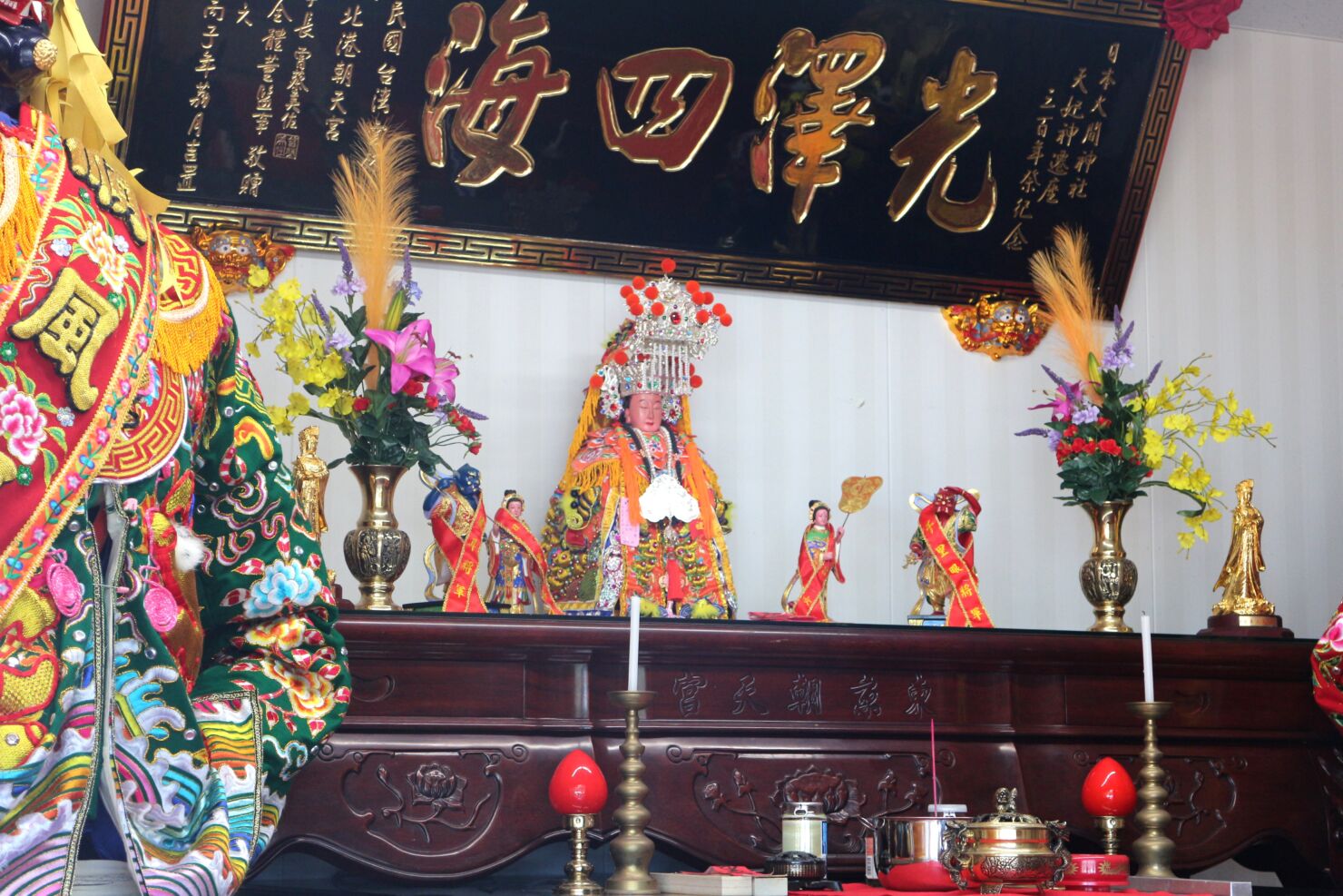 少し街中へ進むと、赤い鳥居が立つ大間稲荷神社が現れます。こちらの神社には、台湾、北港朝天宮から分霊された漁業・航海の守護神である媽祖(まそ)様が祀られており、毎年7月の海の日には天妃様行列と呼ばれるマグロ漁の加護を祈る行事が行われ、台湾の神輿と日本の伝統が融合した大間独自の祭りが街を賑わせます。媽祖様は大間稲荷神社本殿、右側の拝殿に飾られており、静かな境内から大間を支える海を見守っています。普段は見ることができませんが、当協会旅行商品の『函館・大間まぐろきっぷ』の催行に合わせて、特別に拝殿の開放が行われ、媽祖様の姿を見ることができます。※ページ下部にリンクあり