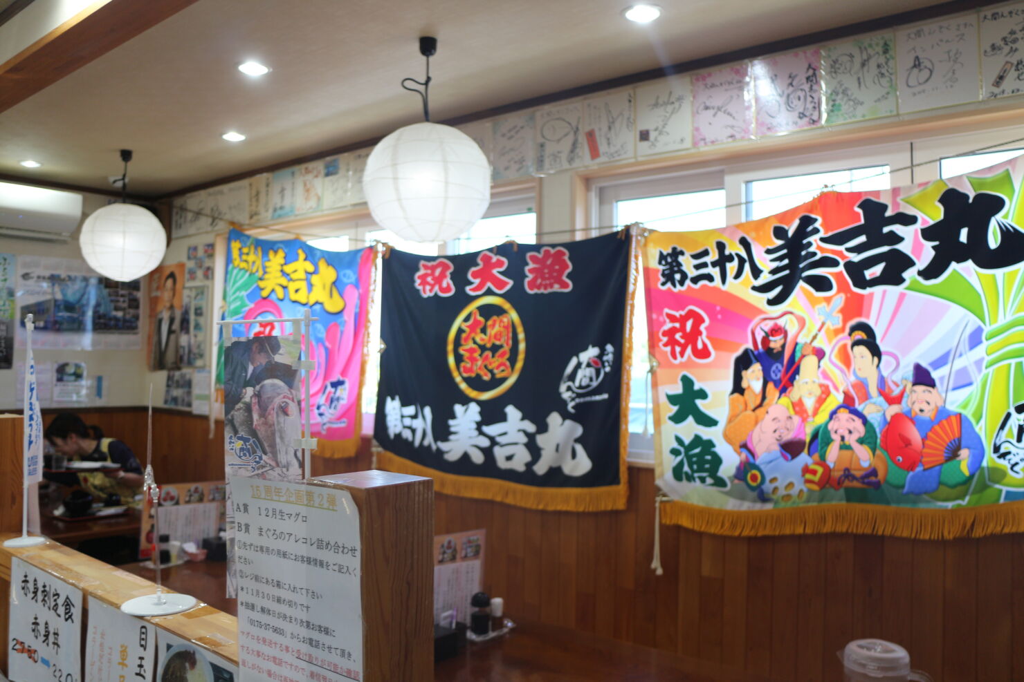 大間フェリーターミナルから車で5分ほど大間崎方面へ進むと、大間の中心街である”浜町商店街エリア”にたどり着きます。このエリアには、大間漁港荷揚げ場があり7~12月の時期には、運がいいとマグロの水揚げシーンを見られることもあります。