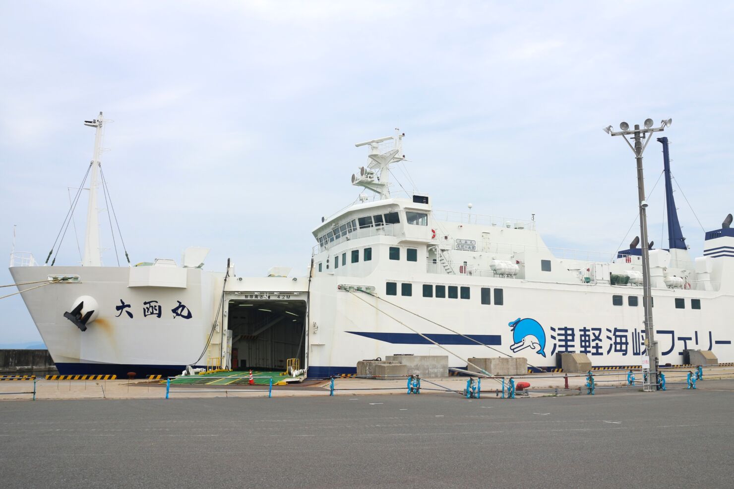 津軽海峡フェリー「大函丸」へ乗船し、約90分の片道クルーズで大間へ向かいます。フェリーの上からは、一面に広がる津軽海峡や、函館山などの眺めを楽しむことができます。函館市内からは見ることができない”函館山の裏側”はフェリーならではのレアポイントです。