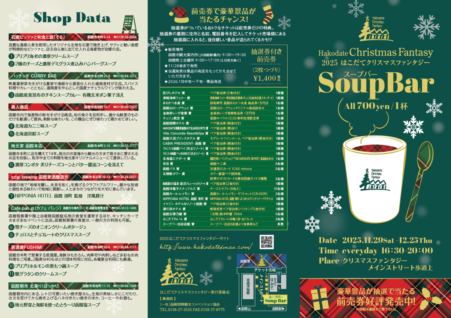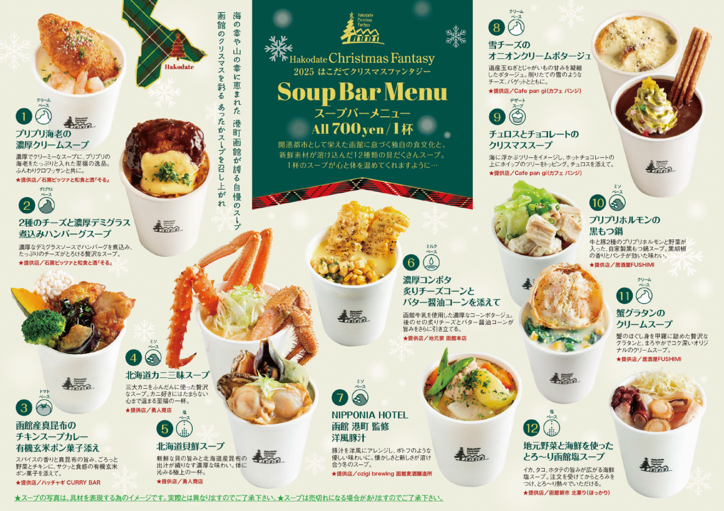 スープバーの出店も行われます!昨年同様、BAYはこだて前の歩道(ツリーが見える通り)に設置予定です。
