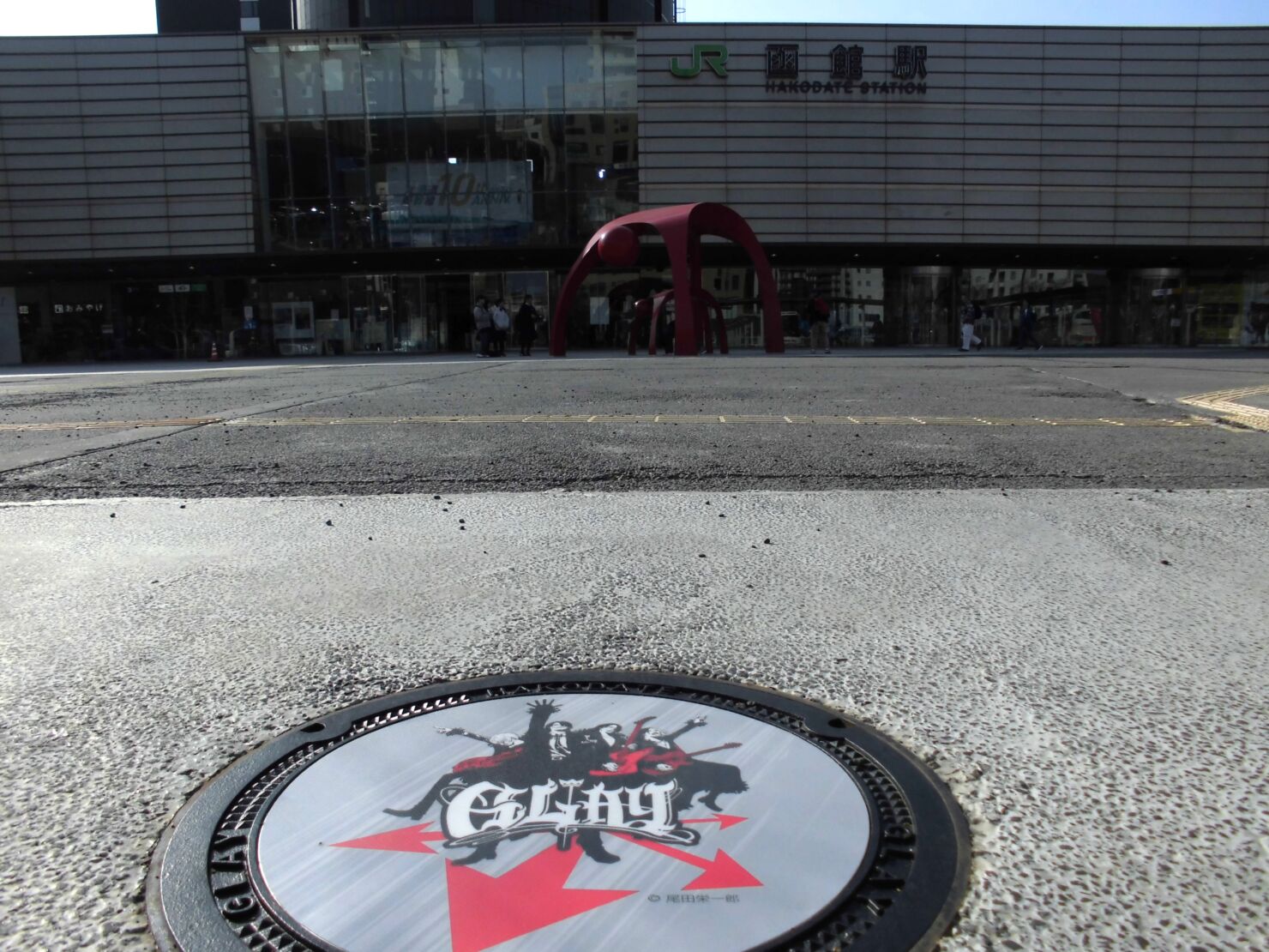 函館駅前には今年もGLAYのカラーマンホールが設置されております!